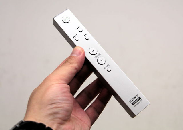 付属のリモコンはシンプルなボタン配置が特徴的だ