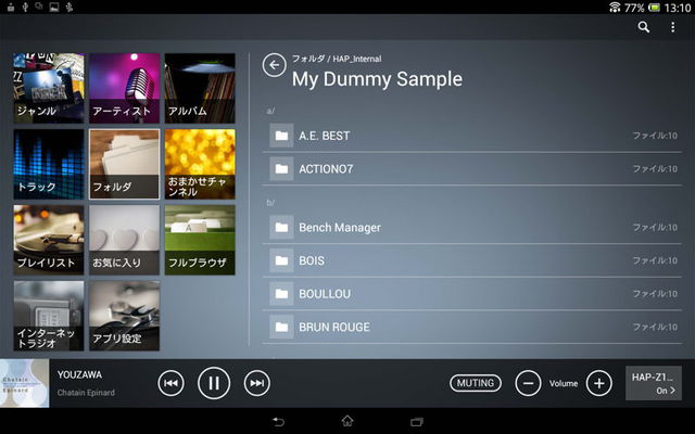 「フォルダ」ビュー。フォルダの階層をそのまま辿って目的のファイルを探し出せる