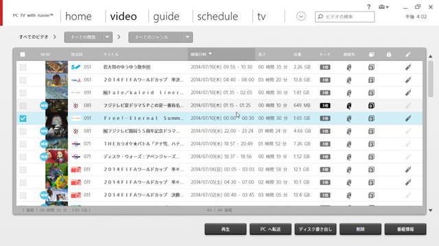 録画番組の再生は「video」タブを選択。ネットワーク上の複数のnasne内の番組を横断的に表示したり、ジャンル絞り込みもできる