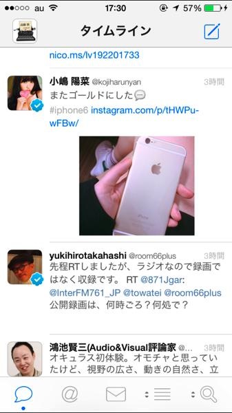 iPhone 5:Tweetbot。ある時刻のタイムライン
