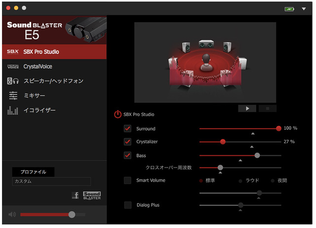 各種設定は「Sound Blaster E-Series コントロールパネル」で行う