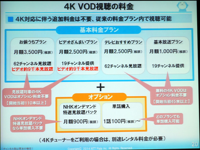 4種類のプランいずれかに加入することで4K VODも利用可能に