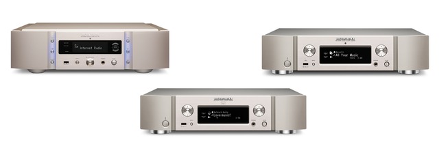 マランツのネットワークプレーヤーは「NA-11S1」(右上)、「NA8005」(左上)、「NA6005」(中央下)の3モデルを用意。上位2モデルはUSB-DACも内蔵するが、NA6005は省略。一方で上位モデルにはない特徴として、Wi-Fi、Bluetooth、AM/FMチューナーを内蔵する