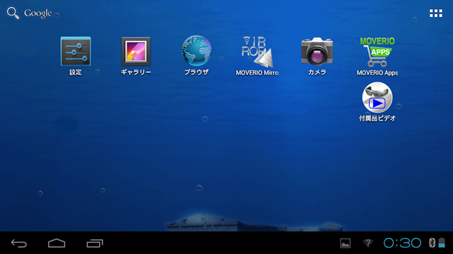 これがMOVERIOのホーム画面。両眼ディスプレイを通した向こう側にこれが見えます
