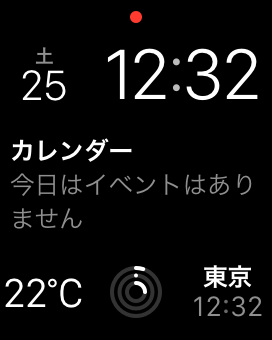 文字盤(時計)のフェイスは、デフォルトでは簡素な「モジュラー」が設定されている。上部の赤丸は、未チェックの通知があることを意味する