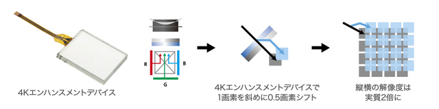 EH-LS10000は、画素ずらしで4,096×2,160相当の表示を実現