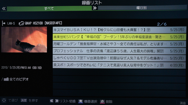 再度、“REGZA”「Z10X」からアクセスした「HS-210-D」の録画リストは問題なく認識