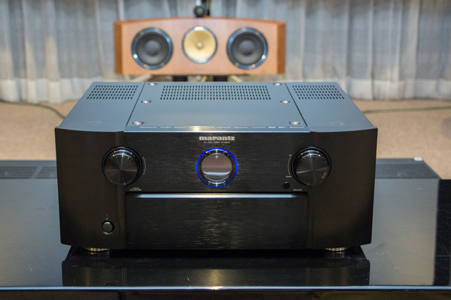白河工場の開発試聴室に設置された「AV8802A」。マランツの旗艦AVプリアンプだ