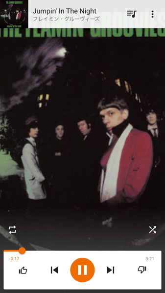 Google Play Musicの再生中画面。とにかくジャケ写を大きく表示する