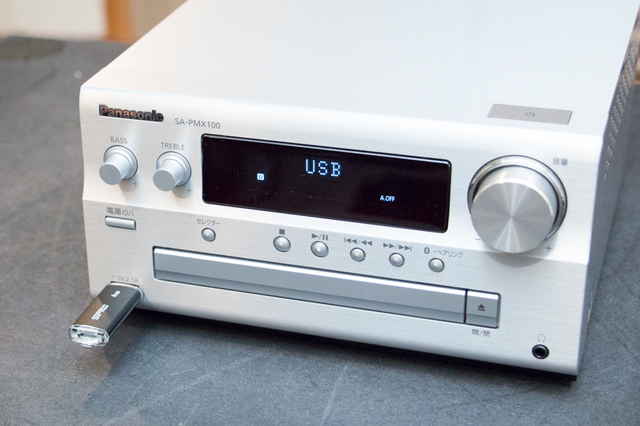 ハイレゾ音源をUSBメモリーにコピーして、本体前面のUSB端子に挿すだけ。「USBメモリー再生」は最も手軽なハイレゾ再生方法です