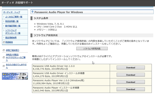 パソコン用再生ソフト「Panasonic Audio Player」はパナソニックのサイトからダウンロードできます