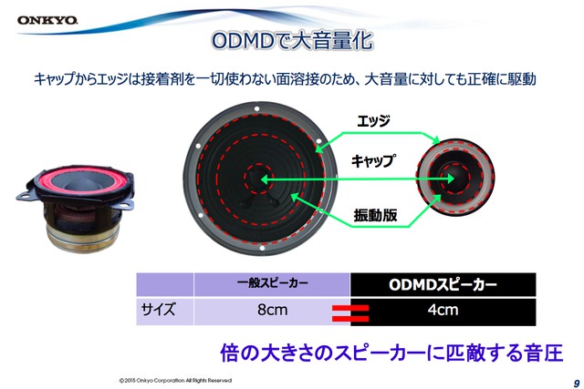 φ40mmの新開発フルレンジスピーカー「ODMD」を搭載