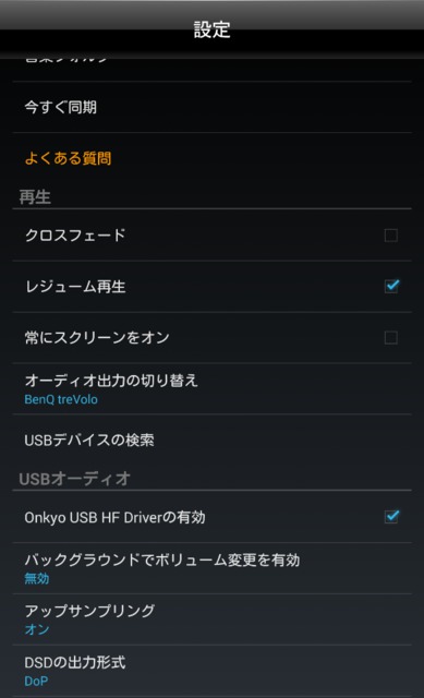 試聴はAndroid版「ONKYO HF Player」で行った。出力先に「BenQ treVolo」を選べば再生できる