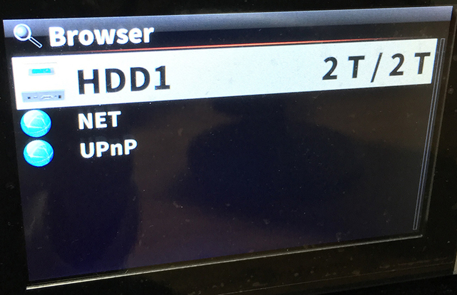 内蔵HDDにコピーした楽曲は「Browser」→「HDD1」から再生可能。Music DBから再生する場合は、前述のようにインポートが必要だ