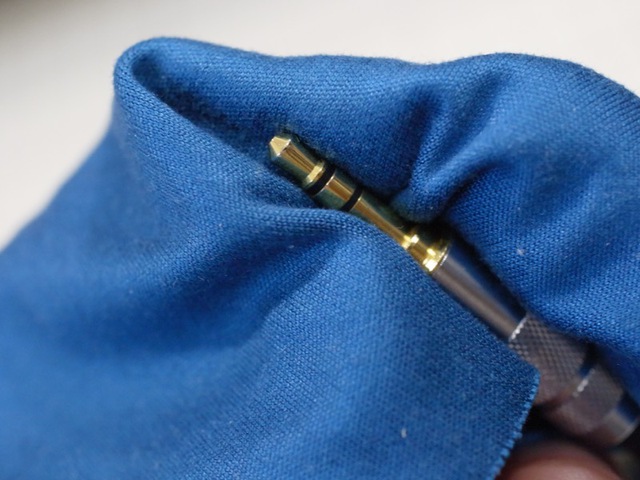 プラグもつまんで包んで拭いておく。あとそもそもプラグの接点部分は皮脂汚れを防ぐため、普段から指で触らないほうがよい