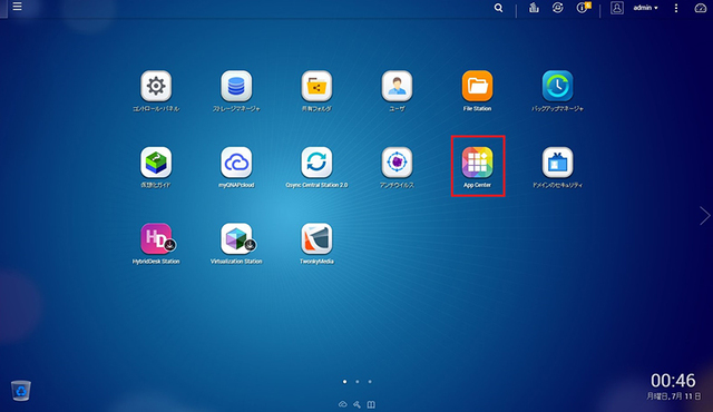 TVS-471のUI(ウェブブラウザで表示できる)からApp Centerを選択