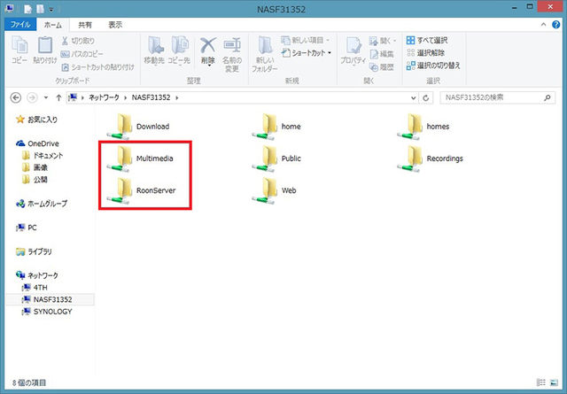 「RoonServer」と「Multimedia」の共有フォルダが出来ている