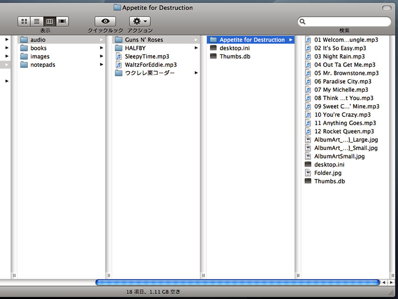 サンプルのmp3ファイルが入っていた階層にフォルダーを追加。実際のmp3ファイルはさらに2階層下に入っているという構造にしてみた