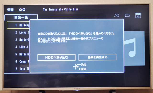 HDDへの取り込みを選択。取り込みは60分前後のアルバムで、だいたい10分前後かかった