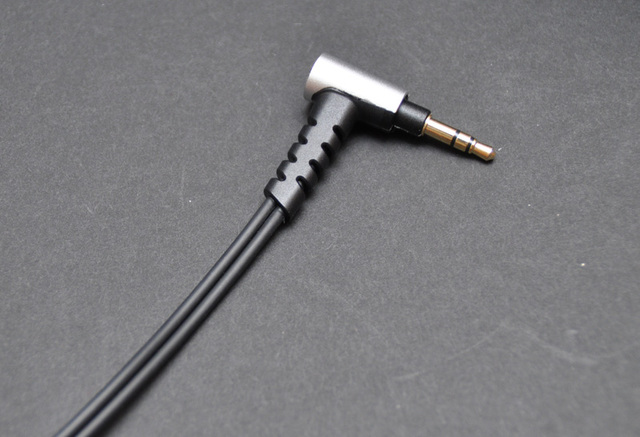SR9に付属するケーブル。プレーヤー側のプラグはL型で、スリーブにもアルミ素材を採用する