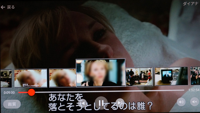 シーンのサーチ検索。10秒間隔でサムネールが生成されているので、見たいシーンが探しやすい
