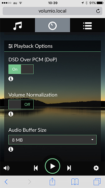 最新版VolumioのWEBインターフェイスにアクセスし、DoPを無効化して設定を保存すればOK。これだけで、Direct DSD再生に切り替わる