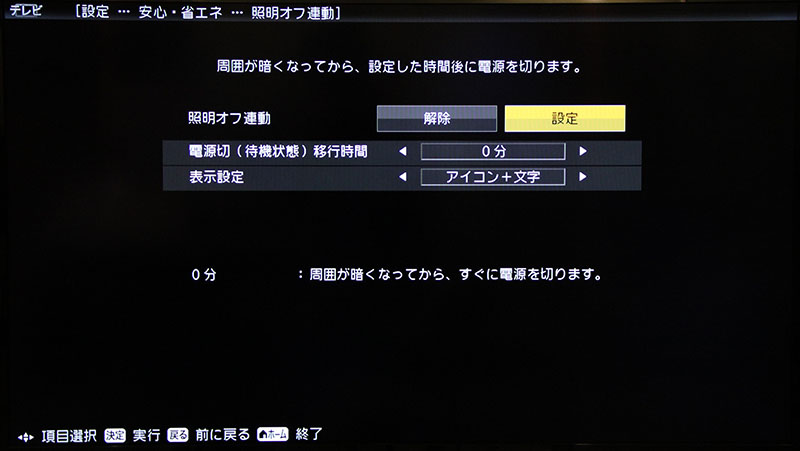 「照明オフ連動」もAQUOS独自の節電機能だ