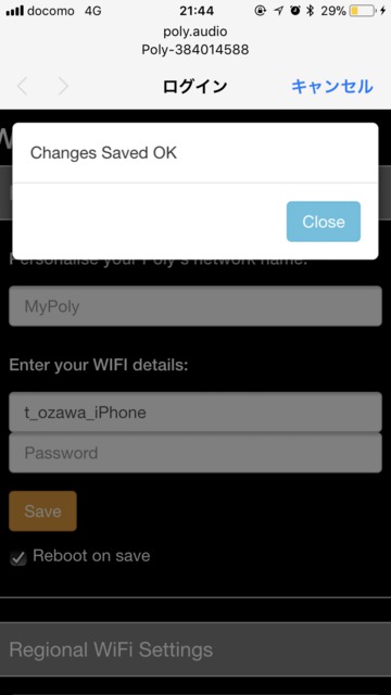 上記のポップアップが出たら、「Close」をタップしてしばらく待つ