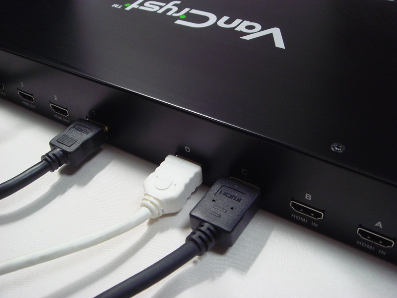 VM0404Hは入力/出力各4系統に対応、任意のソースを好みのディスプレイへ出力できる