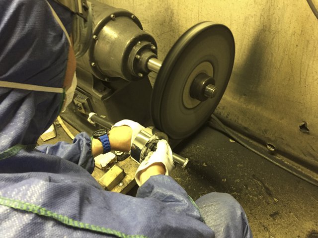研磨中の様子。一点一点、熟練の職人がていねいに磨き上げていく