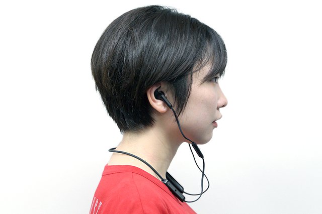 形状記憶素材を採用したという首回りのケーブル部分は、体にフィットしやすく、ズレにくい
