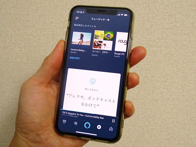 モバイル版(iOS)のAmazon Alexaアプリ。再生したいコンテンツなどはこちらで操作できる