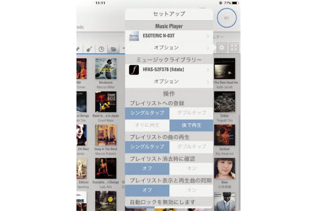 ESOTERIC Sound Streamのセットアップ画面。N-03Tと操作端末を同一ネットワーク下に置き、「Music Player」にN-03Tを選択すれば良い