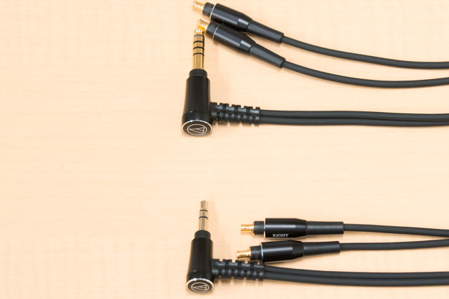 4.4mmバランスケーブル(長さ1.2m)と、3.5mmステレオミニケーブル(長さ1.2/3m)の3本が付属。コネクターはしっかりと嵌合するA2DCプラグ