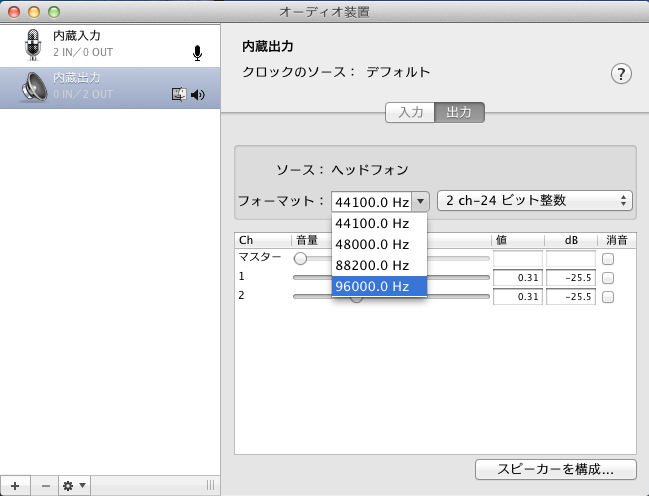 標準装備の「Audio MIDI 設定」を使えば、96kHz/24bitなどの出力条件を強制的に指定できる(iTunesなど多くのオーディオ再生ソフトは自動)