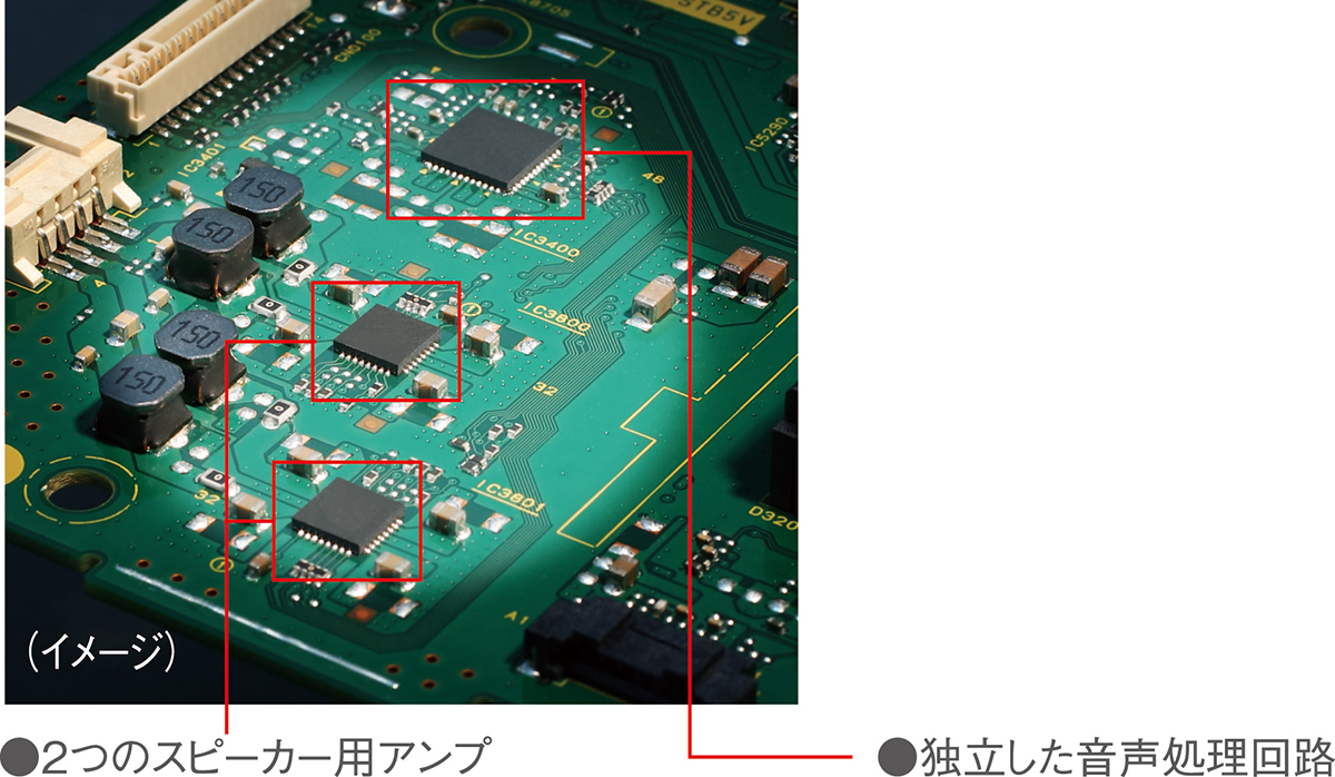 立体音響「Dolby Atmos」に対応するだけでなく、バイアンプ駆動とオーディオ専用回路の採用により、クリアかつパワフルなサウンドも実現する