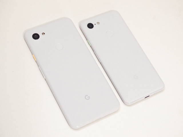 背面パネルの仕上げを比較。左がPixel 3a XL、右がPixel 3。よく見ないと素材の違いはほとんどわからない