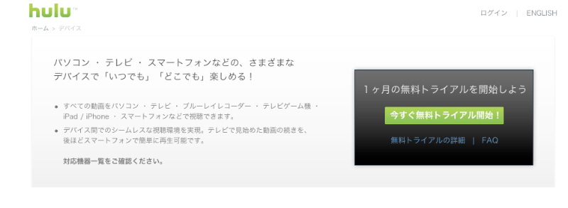話題の「Hulu」が日本上陸、現在1ヶ月の無料トライアルキャンペーン中