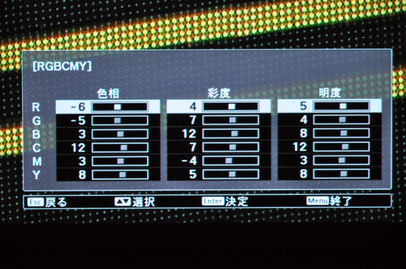 RGBCMYの各色について、色相/彩度/明度の微調整が行える
