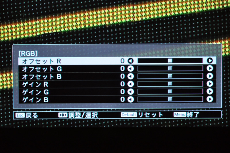 RGB各色について映像の明度を、暗い部分と明るい部分とで調整できる