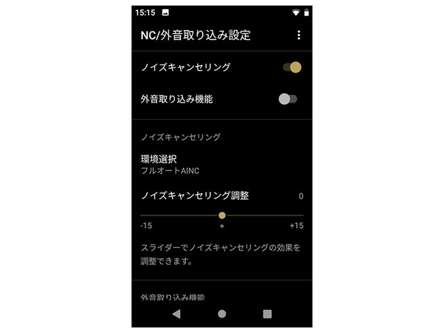同梱イヤホン仕様時にはノイズキャンセリング機能および外音取り込み機能にも対応
