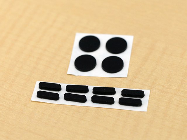 インシュレーターとしての役割を果たすゴムチップが付属。底面または側面に貼って使用する