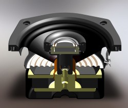 13cmコーン型ウーファーと2.5cmソフトドーム・トゥイーターを同軸(コアキシャル)構造に配置して、音像や音域が自然につながったサウンドを実現した