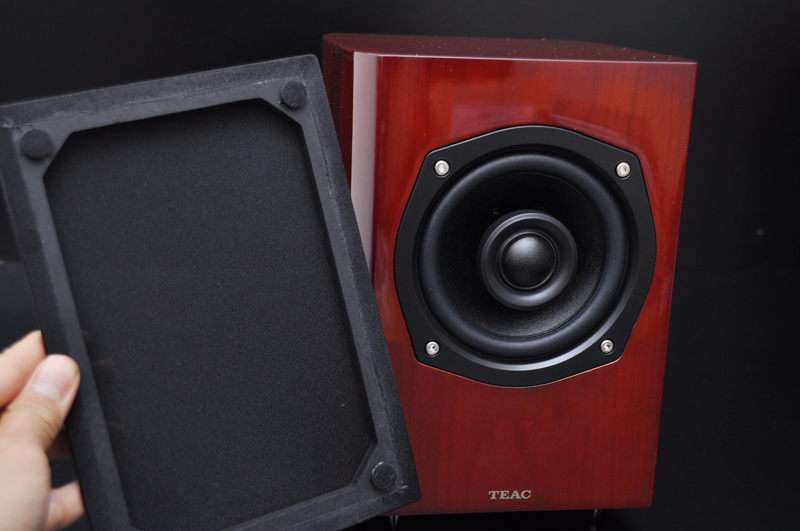 着脱可能なスピーカーグリルはマグネット固定式。エンクロージャー側にキャッチピンがないので、取付が手軽なだけでなく、見た目の美しさもレベルが高い