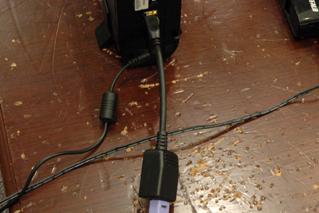 LANアイソレーターRLI-1はサイズも小型なので、取り回しの際に面倒になることはない。写真はNAS側に装着した例
