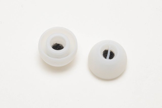 イヤーピースは本体色に応じたカラーが3サイズ同梱。スポンジ状のフィルターを詰めた専用品だ