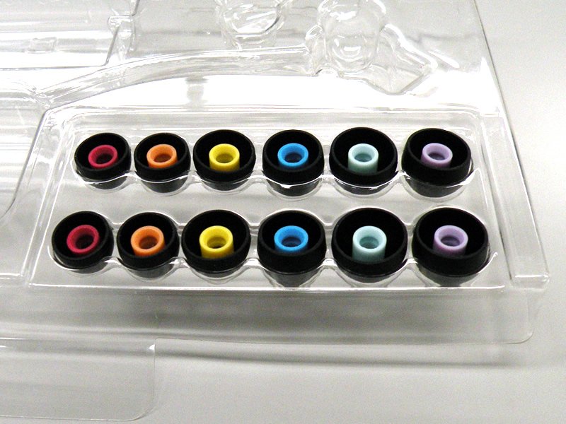 ペアリングが分かりやすいよう色分けされた付属イヤーピース