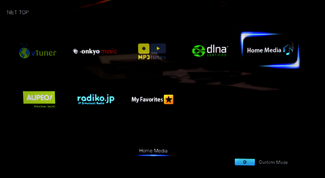 ハイレゾ・サラウンド音源を再生する際は、「DLNA」メニューではなく、新設された「Home Media」メニュー(写真右上)から行う。