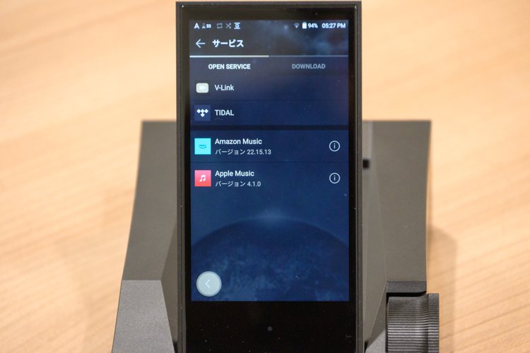 特定のアプリをインストールして使える「Open APP Service」対応で、一部の音楽ストリーミングサービスは本機だけで再生できる