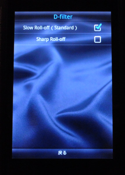 据え置きオーディオでもマニアックな機能として認知されている、DACのフィルター設定を搭載。初期設定は「Slow Roll-off」